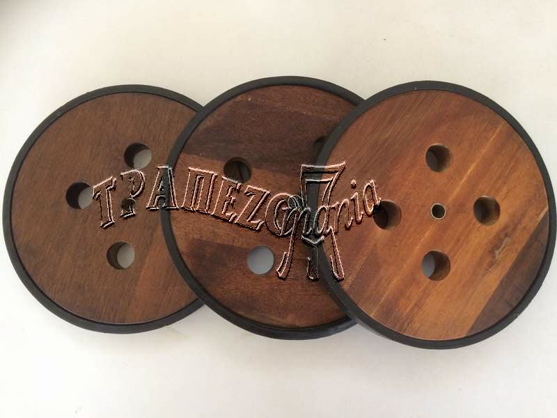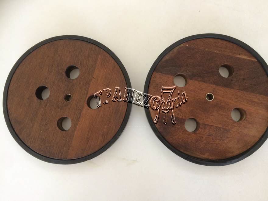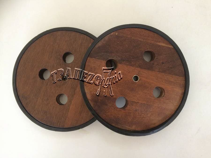 Εχουν διάμετρο 19,5cm με τρύπα στο κέντρο και διαθέτουν και λάστιχο περιμετρικά για να αποφεύγονται τυχόν τριξίματα αλλά και για αποφυγή σημαδέματος σε ξύλινα πατώματα.