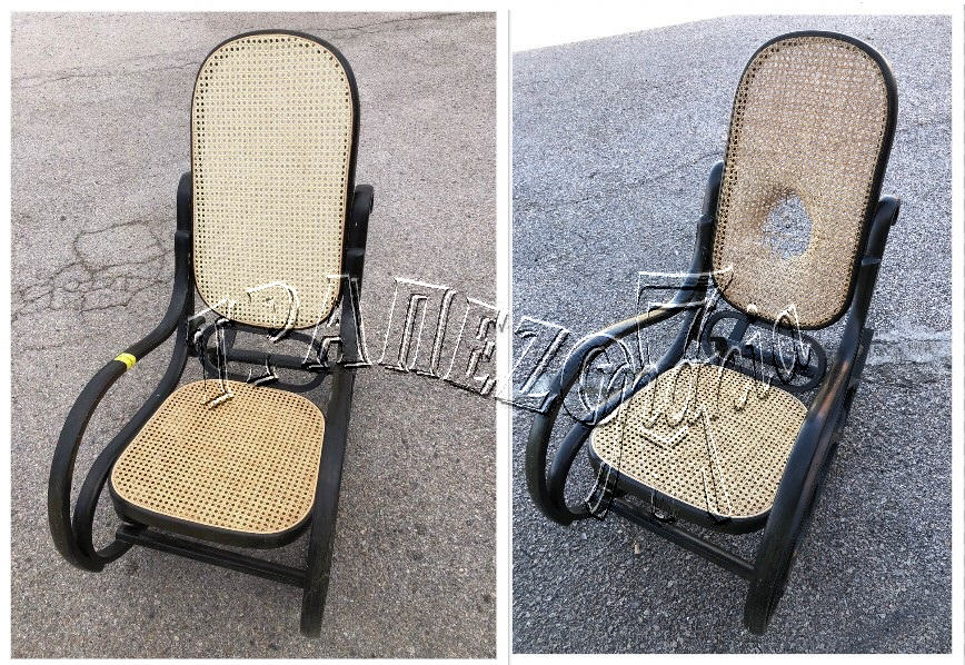 Επισκευή βιεννέζικης ψάθας σε πολυθρόνες κουνιστές, σε κάθισμα και πλάτη, στα συγκεκριμένα μοντέλα η πλάτη και το κάθισμα είναι βιδωτά και μπορούν να αφαιρεθούν προσεχτικά επάνω από την πολυθρόνα για να επισκευαστούν.