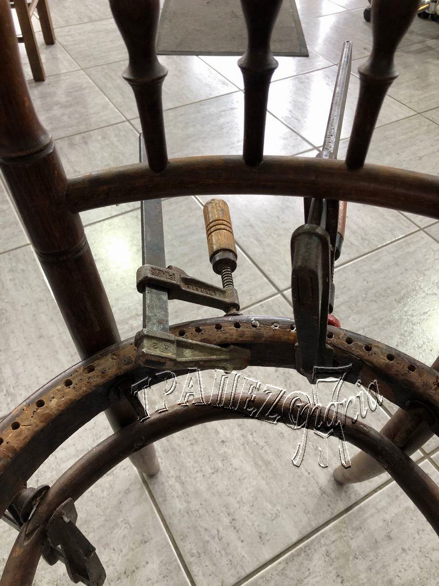 Επισκευή αντικατάσταση βιεννέζικης ψάθας σε κουνιστές παλιές πολυθρόνες.