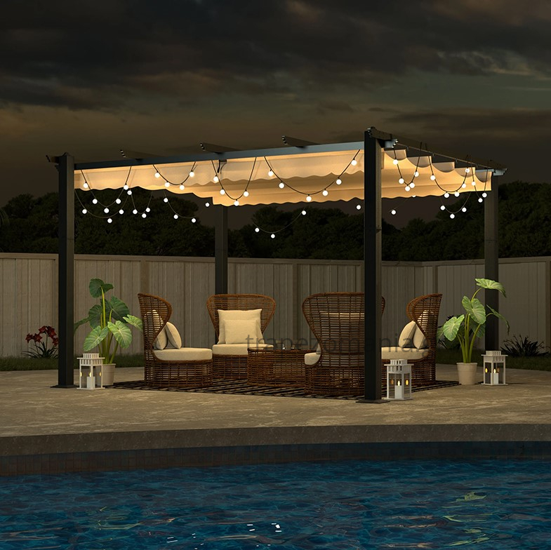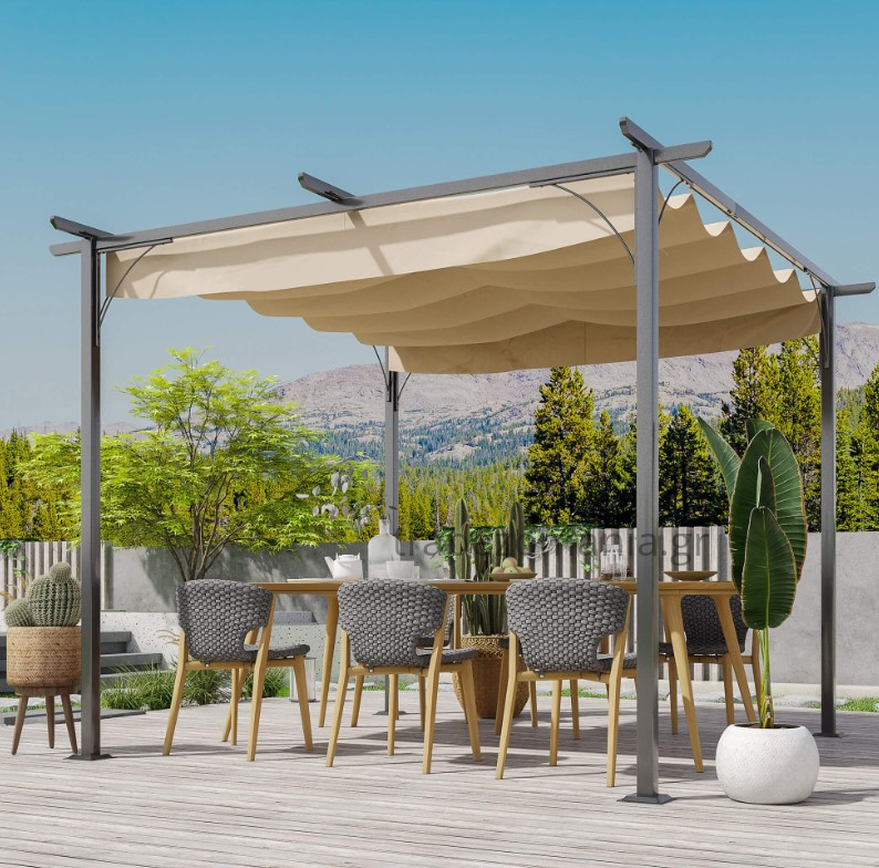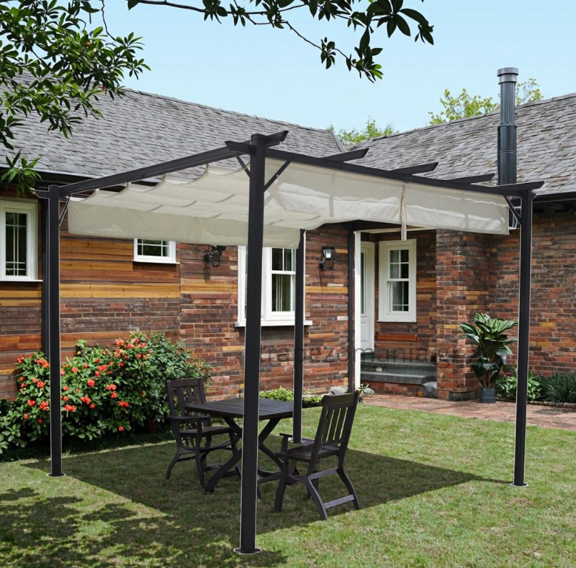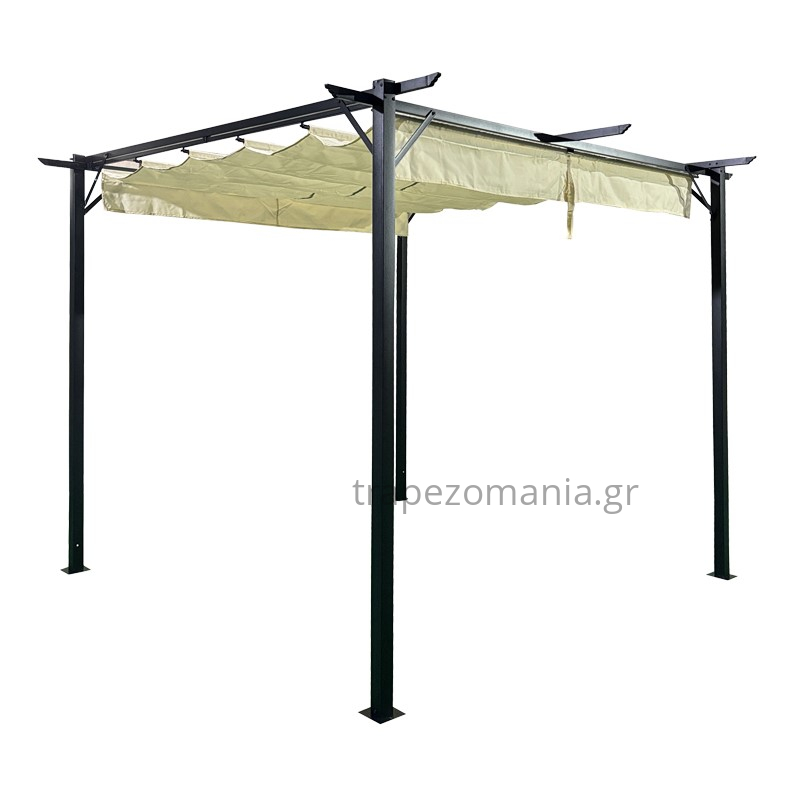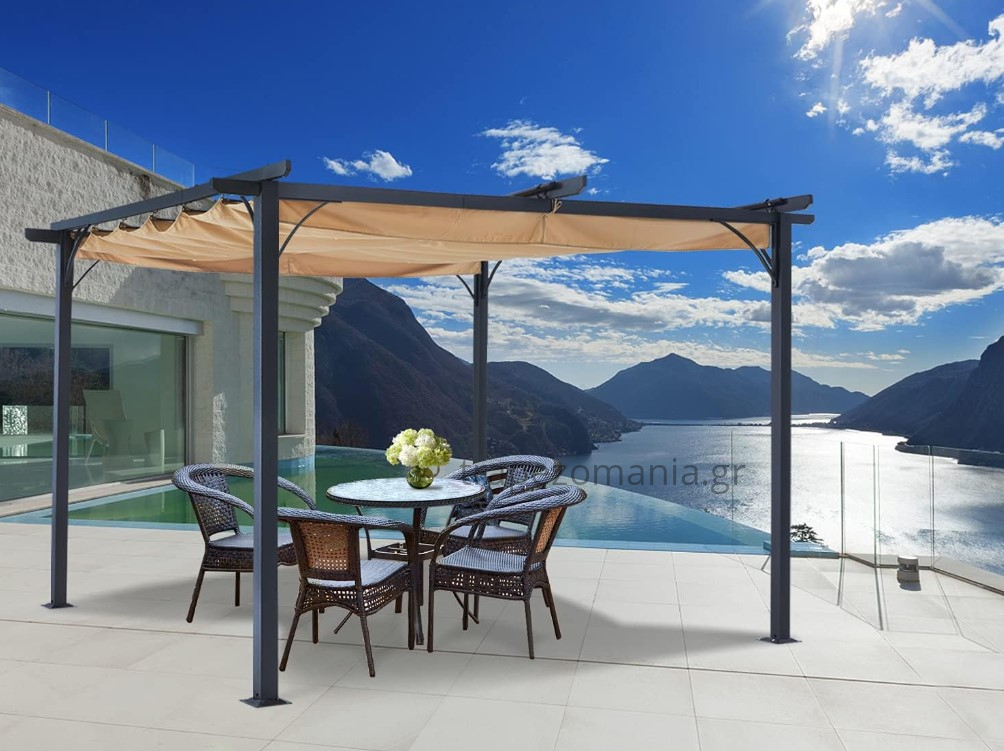 Το ξεχωριστό του χαρακτηριστικό είναι το συρόμενο ύφασμα σκίασης, που σας επιτρέπει να ρυθμίζετε εύκολα την κάλυψη ανάλογα με την ένταση του ήλιου ή τις καιρικές συνθήκες. Έτσι, μπορείτε να απολαμβάνετε είτε πλήρη σκιά είτε φυσικό φως, δημιουργώντας το ιδανικό περιβάλλον κάθε στιγμή της ημέρας.