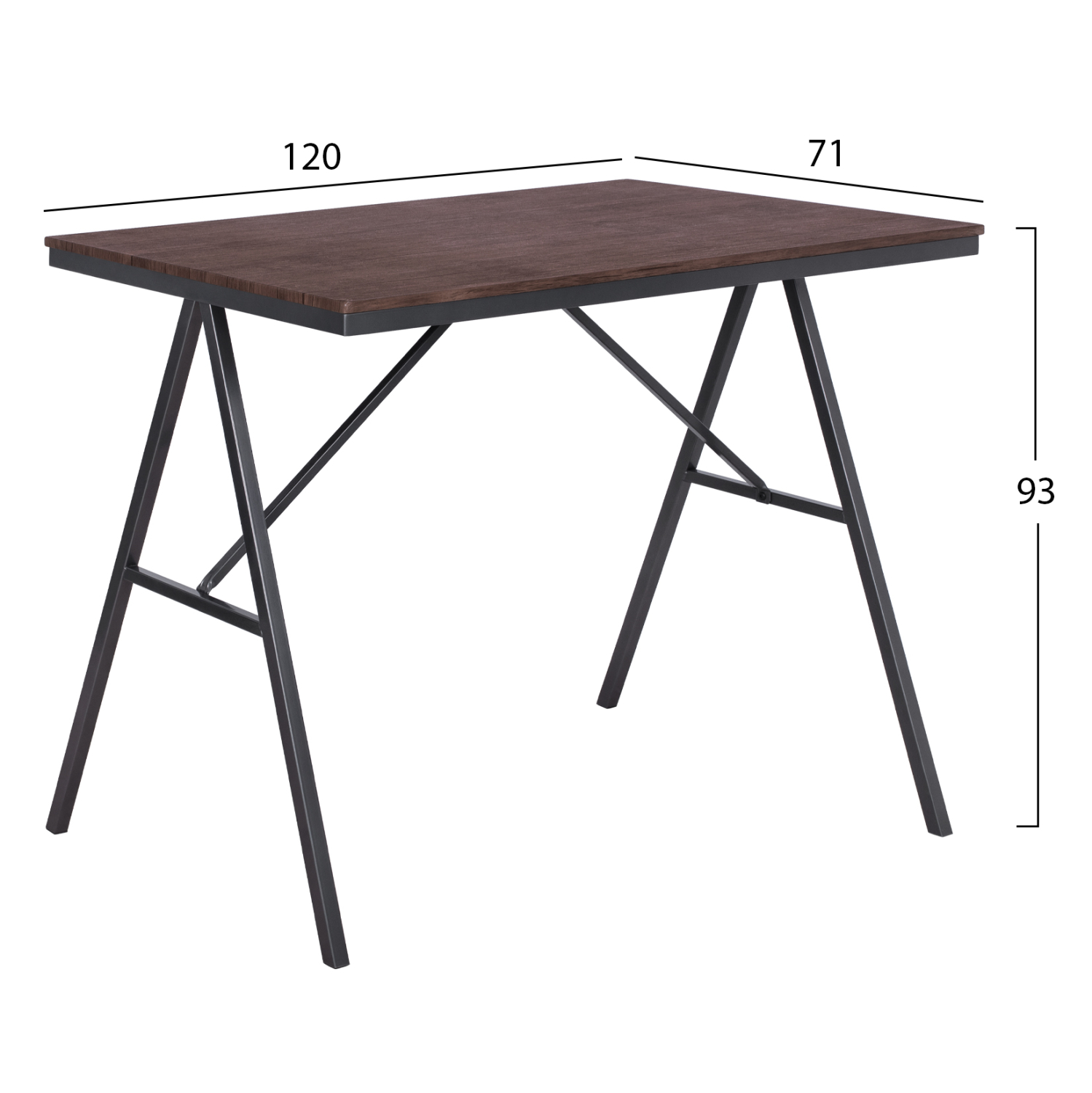 Διάσταση τραπεζιού 1,20Χ70cm και ύψος 0.93cm ξύλινη επιφάνεια MDF σε σκούρα απόχρωση.
