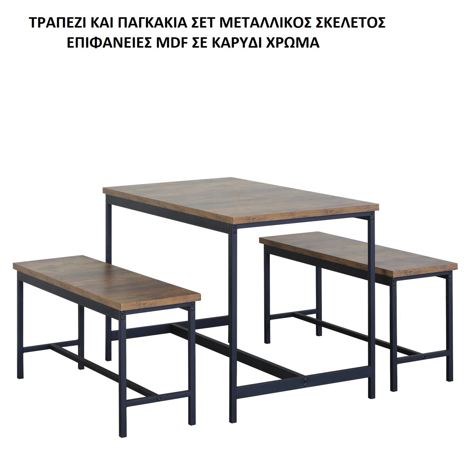 🍽️ ΣΕΤ ΤΡΑΠΕΖΙ & ΠΑΓΚΑΚΙΑ ΜΕ ΜΕΤΑΛΛΙΚΟ ΣΚΕΛΕΤΟ ΚΑΙ ΕΠΙΦΑΝΕΙΕΣ MDF ΣΕ ΚΑΡΥΔΙ ΧΡΩΜΑ