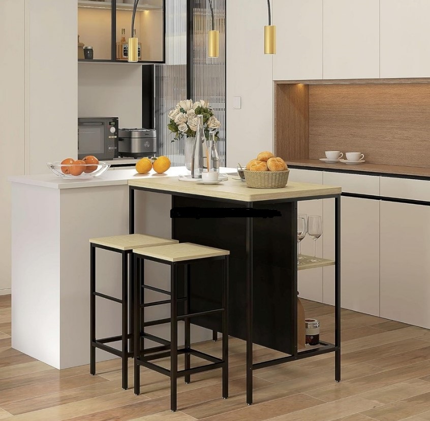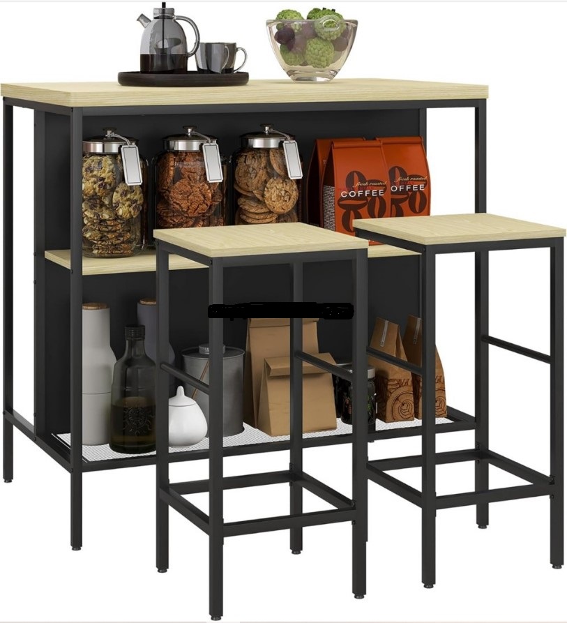 Ανανεώστε τον χώρο σας με αυτό το μοντέρνο σετ μπαρ, που συνδυάζει πρακτικότητα και κομψό βιομηχανικό στυλ. Το σετ περιλαμβάνει τραπέζι μπαρ με ενσωματωμένη ραφιέρα αποθήκευσης και δύο σκαμπώ, προσφέροντας ιδανική λύση για κουζίνες, μικρούς χώρους ή επαγγελματική χρήση (καφέ, μπαρ, airbnb κ.λπ.).